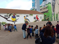 Dando un paseo los niños y niñas de 3, 4 y 5 años se han dirigido hacia la nueva sede de la asociación, situada en el antiguo silo, muy cerca de nuestro colegio.